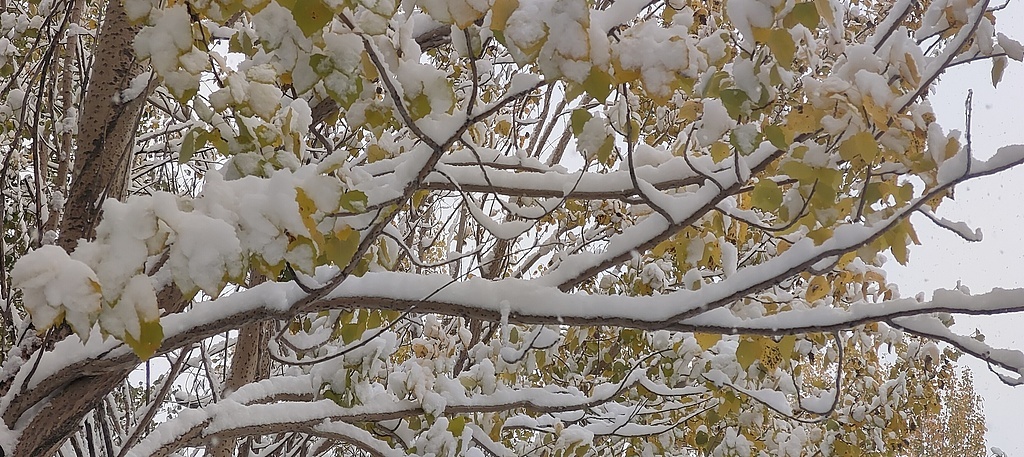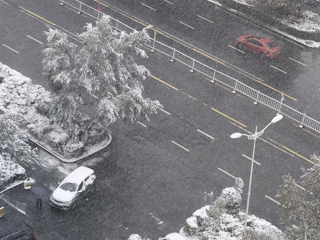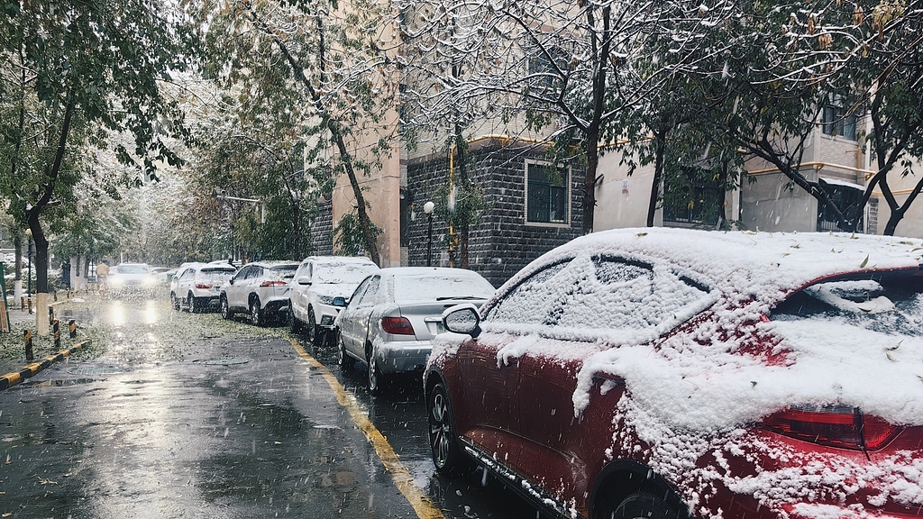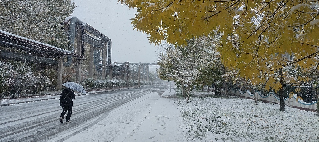 10月15日,新疆乌鲁木齐,当地迎来首场降雪。