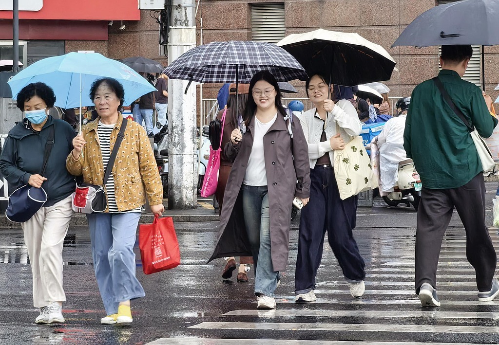 10月14日,南京最高气温只有20℃左右,伴着密集的小雨,街头已有丝丝凉意,出行的市民都换上了长衣和长裤,还有的市民都穿上了马甲和较厚的外套。